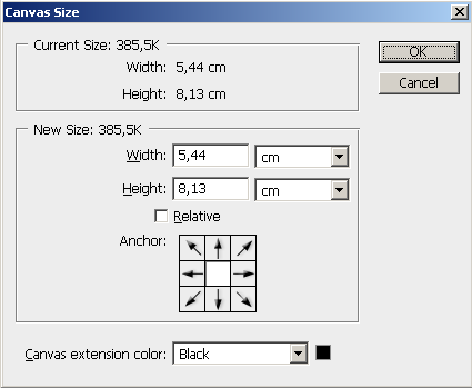 När du har laddat bilden håller du ner Alt, Ctrl och C eller Image, Canvas Size. Nu ska vi ange hur stor ramen ska vara. En smal och enkel ram är 0,3 centimeter. Alltså anger vi Width till 5,74 och Height till 8,43 till denna exempelbild som är 768x514. Klicka OK och plötsligt har du en ram till din bild. Vill du ha en annan färg på ramen, välj det under Canvas extension color.